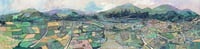 The panoramic shaped card is printed on one side with the reverse blank for your own message, it folds in 2 places and opens out to reveal an illustrated scene of the Malvern Hills from British Camp to End Hill.